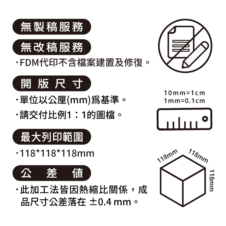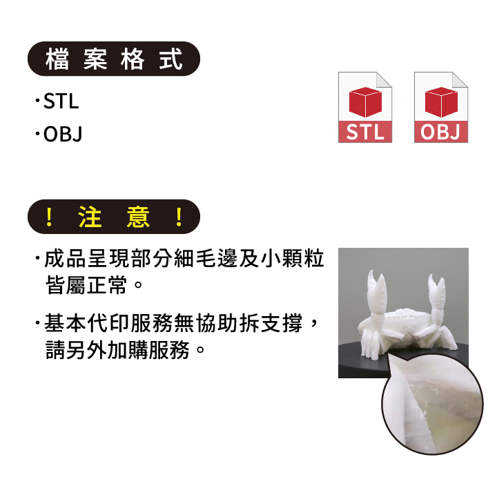 .商品明顯瑕疵破損及髒污(FDM代印產生的部分細毛邊及小顆粒不在此內)。